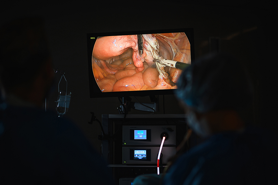 Durant cette procédure, le chirurgien fait de petites incisions abdominales pour introduire des instruments fins et une caméra, retirant ainsi le kyste avec précision.